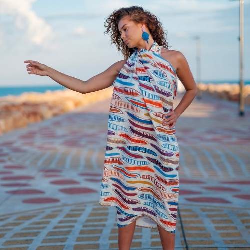The event takes place on the new Town Beach Jetty surrounded by the twilight environment of Roebuck Bay. A runway likes this invites a creative approach to presentation and the models will include local identities and dancers, and will also feature Tara Gower's Burrb Wanggarraju Nurlu dance crew. The event will feature textiles and fashion from local artists and creators across the Kimberley, including Broome's own Nagula Jarndu, Warringari Arts in Kununurra, Rukaji Designs from the Fitzroy Valley, Jaru Girl from the East Kimberley and other local independent designers. Doors open at 5.00pm, giving you time to arrive and enjoy the atmosphere with a glass of bubbles at the bar. Then take your seat and enjoy the show.